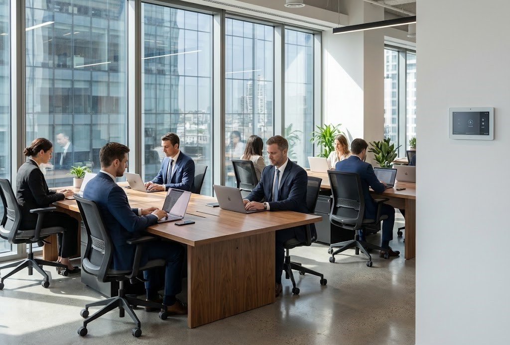 At 7:45 AM, HeyZack detects the arrival of the first staff member in the office. The AI triggers a lighting sequence that gradually illuminates the hallway and corridors based on natural light levels. The conference rooms remain dimmed until scheduled meetings begin. Unused areas stay off to save energy.